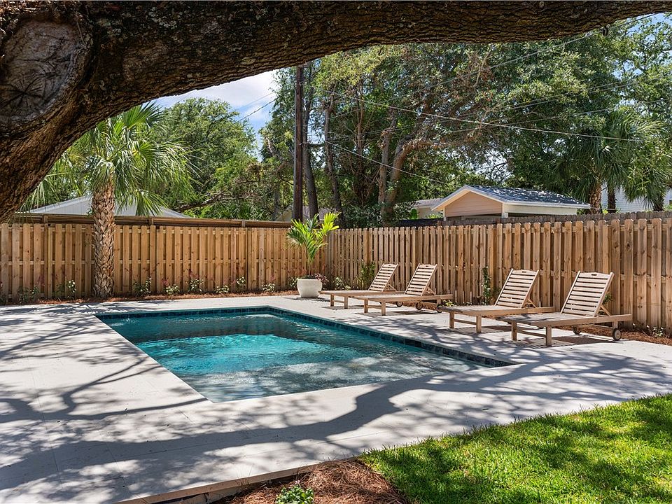 Welcome to an exquisite, fully reconstructed and beautifully furnished home with pool, nestled in the prestigious East Beach community. This essentially brand-new, turn-key property combines elegant design with unparalleled craftsmanship inside and out, including a brand new salt water pool with heater.