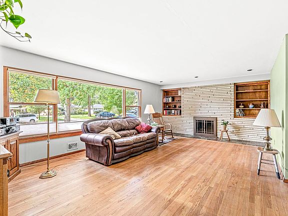Limestone fireplaceFinished lower levelCustom bookshelvesThree bedroomsIn-home laundry areaBedroom with egress windowLimestone ranch