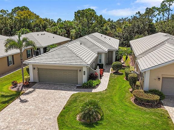 Welcome to carefree living, where the details are taken care of so you can simply enjoy the Florida life. With condominium ownership, exterior insurance, wind coverage, roof reserves, exterior painting, lawn care, pest and termite protection, and even discounted high-speed internet are all included. The neighborhood offers two pools, a resident-run clubhouse, and full community management, creating a welcoming and easygoing atmosphere. There are no CDD fees, and optional membership at Plantation Golf & Country Club adds access to championship golf, tennis, pickleball, fitness, dining, and an active social calendar. This meticulously maintained home offers two bedrooms, two-and-a-half baths, a den, and a spacious great room. The kitchen is an entertainer’s delight, featuring custom cabinetry with glass inserts, granite counters, undercabinet lighting, a center island, updated appliances, custom pantry shelving, and a breakfast nook with built-ins and a wine cooler. The primary suite offers bay windows overlooking the preserve, two walk-in closets with custom organizers, and a spa-inspired bath with dual sinks and a walk-in shower with bench seating. Guests enjoy a private en-suite with a generous custom closet and walk-in shower. The large den is ideal for a home office or hobbyist, with a spectacular built-in desk and generous storage. Step outside to the extended screened lanai and take in the peaceful preserve view, where a stretch of green space opens to a backdrop of Old Florida scenery. This private outdoor retreat offers both beauty and function, with a spacious covered area complete with ceiling fan, TV outlet, and comfortable furnishings that are included with the home. It’s the perfect spot to relax with a morning coffee, entertain friends, or simply enjoy the quiet natural setting. Additional features enhance both comfort and peace of mind. The extended garage includes a motorized screen door and a generous climate-controlled storage room with built-in shelving. The home is fully storm-ready with impact hurricane windows, mechanical roll-down storm shutters on the lanai and front entry, and a whole-house surge protector. A Kinetico water treatment system adds efficiency, while the laundry room is outfitted with a utility sink and Speed Queen washer and dryer. Plantation shutters throughout, a Verdiglide shade on the sliding doors, elegant crown molding, and thoughtful architectural details make this home as stylish as it is functional. Combining storm protection, extensive custom upgrades, and true maintenance-free living, this home is perfectly located just minutes from Gulf beaches, shopping, dining, Wellen Park Downtown, the Atlanta Braves Spring Training Stadium, and I-75. This villa truly offers the best of Florida living.