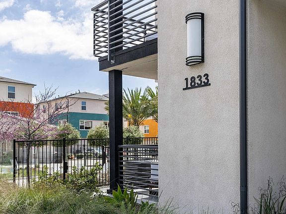 Immerse yourself in luxury and sophistication with this exceptional 2021-built 4 bedroom 3.5 bathroom Millenia penthouse located in the vibrantwalking district with FULLY OFF PAID SOLAR. Situated in the most coveted corner unit of the Millenia Community, this residence offersunparalleled views of the pool and playground, as well as immediate access to resort-style amenities including parks, a community garden, anda dog park. Step outside to find your front yard adorned with BBQs, fire pits, and a lap pool with a jacuzzi, creating the ultimate outdoor oasis.Nestled at 1833 Onyx Rd, this property enjoys tranquility with no drive-through traffic, ensuring peace and privacy with the walkability torestaurants and everything the beautiful Millenia Community provides. Property includes a 3rd floor master bedroom retreat and also the first floor boasts a full bedroom and bathroom with its own private outdoor area, perfect for guests or multigenerational living. The property's ideal positioning ensures an abundance of natural light from sunrise to sunset, highlighting its open concept design, stainless steel appliances, and designer finishes throughout. Notably, a new custom wood flooring upgrade valued at $40,000 adds an extra touch of elegance to the space.Beyond the luxury of 1833 Oynx, the surrounding neighborhood is one of San Diego's most sought-after, boasting top-rated schools ,convenient shopping options, and a plethora of restaurants - all within walking distance in every direction. Don't miss the opportunity to experience the epitome of modern living at 1833 Onyx.