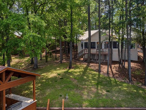 Beautiful Waterfront Home located in prestigious Panther Creek on Lake Cypress Springs! Panther Creek, known for its charming topography, is winding and beautifully wooded set in the East Texas pines. Positioned to capture incredible lake views, the home is nestled in the tall pines on a deep .7 acre lot allowing for plenty of parking for family and friends. The home offers several outdoor gathering spots to experience lakeside living ... a newly updated 300 sf screened porch opening to a new deck overlooking the boathouse. This incredible boathouse features 2 stalls for boats, a separate stall for 2 jet skis and tons of storage for water toys. The partially covered deck features a sitting area with a grill, refrigerator, and TV for hours of entertainment. Rope lighting is installed for finding your way back after a night on the water, and the Sunsets are Spectacular! A new lighted sidewalk has been recently added from the deck to the boathouse. Step inside to the open-living concept, bright and airy with hardwood floors, a wall of windows and wood-burning stone fireplace, currently gas logs. Beautifully updated kitchen with oversized island, breakfast bar, farm sink, 5-burner gas cooktop, double ovens, ice maker, wine cooler and walk-in pantry. Spacious primary suite has a separate entrance to the screened porch and includes 2 walk-in closets and an updated bath with huge shower, two sinks and linen closet. The 2 guest bedrooms share an updated hall bath. The laundry room connects to a two-car garage with plenty of storage for tools and additional water toys. The home is equipped with an insect misting system, a generator and sprinkler system for the lakeside yard. Very well maintained and Comes Furnished! Move-in Ready! Schedule your private showing today!