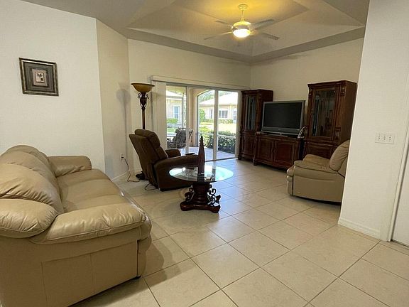 Come discover this beautiful, pet-friendly villa with no rental or age restrictions! Recent updates include a new roof (2023), a screened patio. Inside, you'll find tile flooring with cozy new carpet in the bedrooms, a spacious primary suite with private patio access, two closets, dual sinks, a large shower, a linen closet, and abundant natural light.The kitchen features white 42-inch cabinets, upgraded appliances, and an adjacent laundry room with extra cabinets and a large sink for added convenience.HOA dues include cable, internet, water, trash, exterior insurance, lawn care, and access to resort-style amenities such as a pool, gym, dog park, putting green, and clubhouse.
