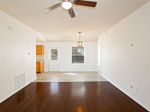 Nestled on a quiet cul-de-sac, this 3-bedroom, 2-bath home features a spacious backyard and a functional 1-car garage. Inside, you'll find an open-concept living and dining area with updated lighting and a bright, modern feel. The kitchen boasts granite countertops, ample cabinet space, and a stunning herringbone tile backsplash. The adjacent laundry room includes washer and dryer hookups for your convenience.