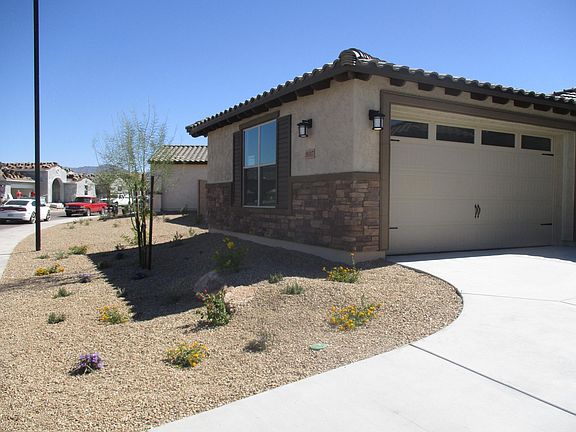 This beautiful 5 bedroom 3 bath home is less than 4 yrs old. Finishing touches were added with ceiling fans, window blinds and backyard landscaping. Located in the highly desirable Estrella Mountain Ranch development and just a short walk from the newest of the two community centers, the Presidio. The kitchen features a huge granite island, all stainless steel appliances with a gas built in cooktop. The large master bath features separate vanities with granite countertops, a soaker tub and huge tile shower. Truly a must see, hurry before it's gone. Tenant to pay 100.00/family initiation fee for resident passes to both clubhouses. They each feature a fitness center and pools, a water park with slides. Community has two lakes with miles of walking paths and trails, Yacht club with boat usage included.