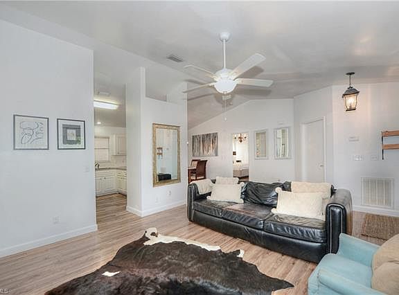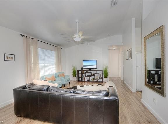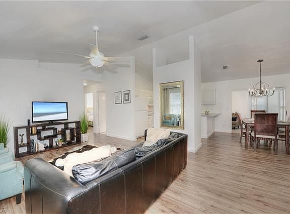 This beautiful remodeled single family home offers 3 bedrooms and 2 full baths with a 2 car attached garage all sitting on a oversized corner lot. This home features upgrades that include new laminate wood floors and tile throughout, a kitchen with resurfaced cabinets and a custom backsplash. Other notables are upgraded light fixtures, new AC unit, a complete remodel of both bathrooms with the rustic farmhouse look, and more. The lanai features a sun room, a large deck for grilling and entertaining, and a large fenced in yard. This home is centrally located to FGCU, I-75, and Gulf Coast Town Center. Don't miss your chance to own this great home today!