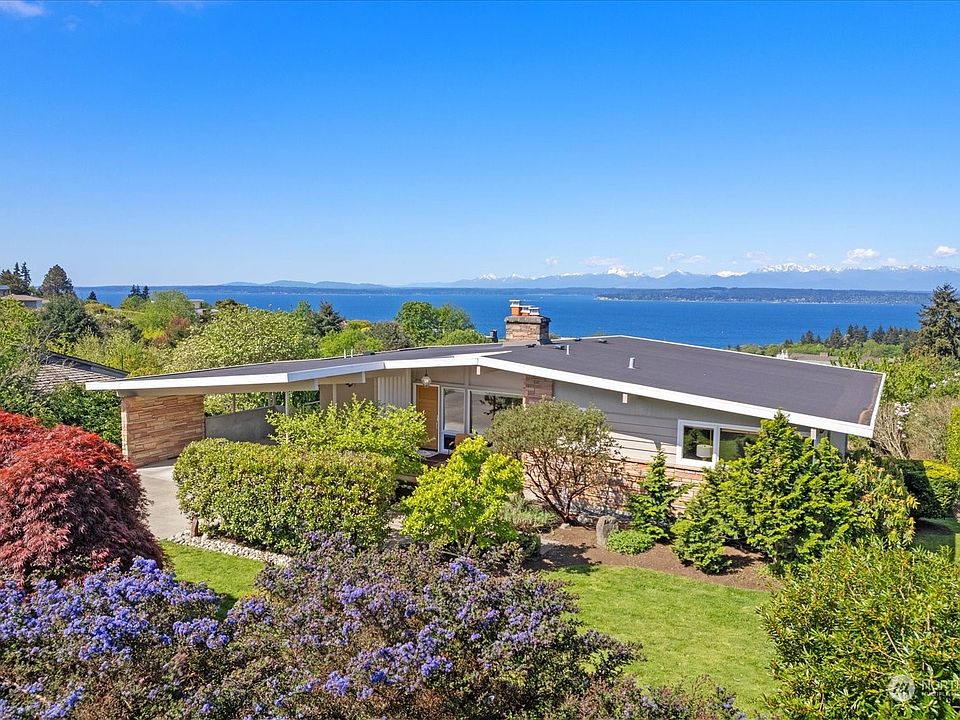 Situated on one of the quietest streets in Innis Arden, you'll be front & center to some of the biggest views attainable in the neighborhood. Watch the sun hit the horizon in every season & enjoy indoor/outdoor living from both the deck & the sprawling usable yard. A full wall of windows frame sweeping Northwest vistas of the Sound & mountains. Not too big/not too small, square footage where you need it & less to heat, clean & maintain. You'll love the cool mid-century vibe & many era-specific attributes that have been preserved while at the same time enjoying updated systems, AC & remodeled kitchen. Fab community w/ clubhouse, pool, trails, beach access, courts, park & community activities. Property line goes beyond west fence about 10'.