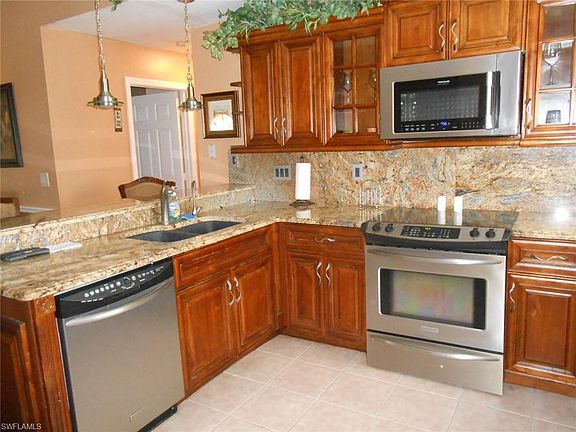 Look no further! This 3 bedroom 2 bath CBS home offers a great room concept with split bedrooms and is located in convenient San Carlos Park close to FGCU, Shopping, SWFL airport, and walking or biking distance to Three Oaks Park. The home sits on a large lot with room for a pool and features a private rear yard. Entire home has tile floors. Kitchen has newer cabinets, granite countertops, stainless appliances including newSamsung refrigerator, and pantry. The spacious master suite includes a master bath with dual sinks and separate tub and shower. Two additional bedrooms and an additional bath with newer shower make this a truly great home. It also offers a huge glassed in lanai with screened windows and a new deck for outdoor grilling. Home was just re-piped removing polybutylene pipes. New A/C. Hurry and make this home your own!