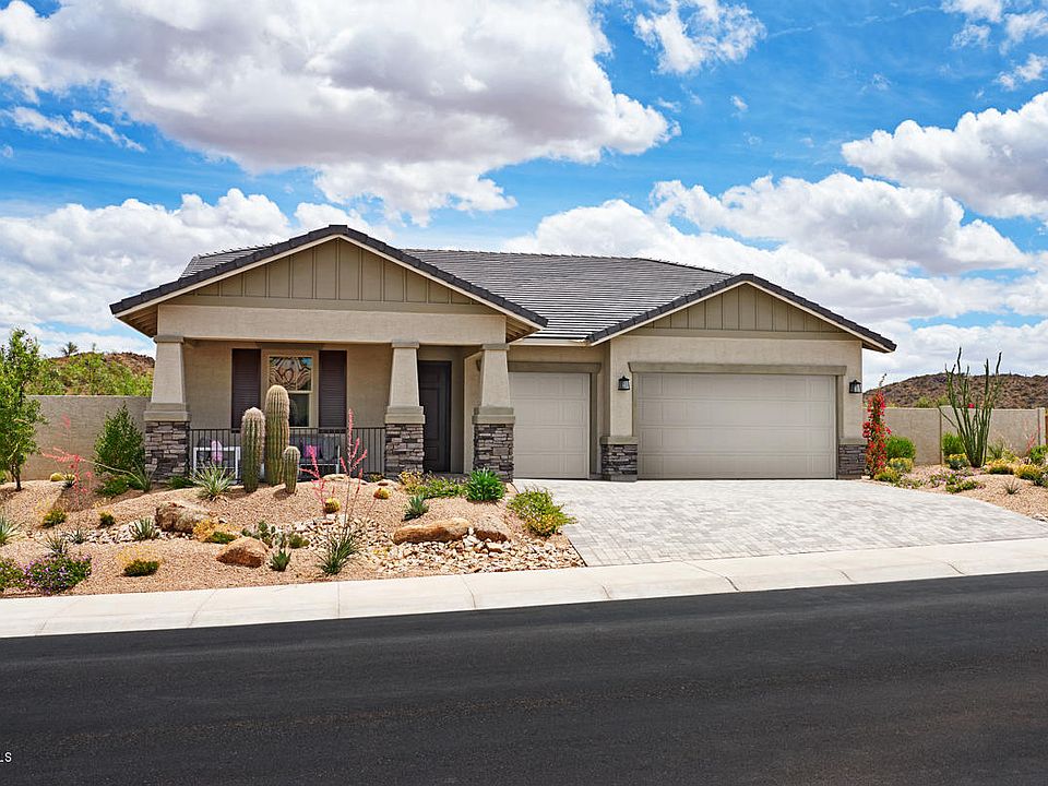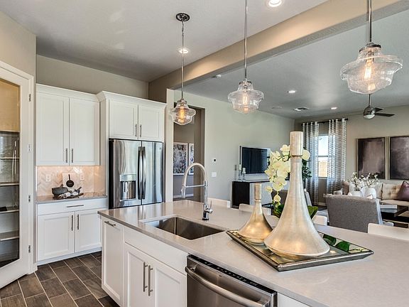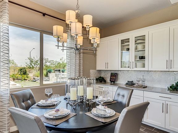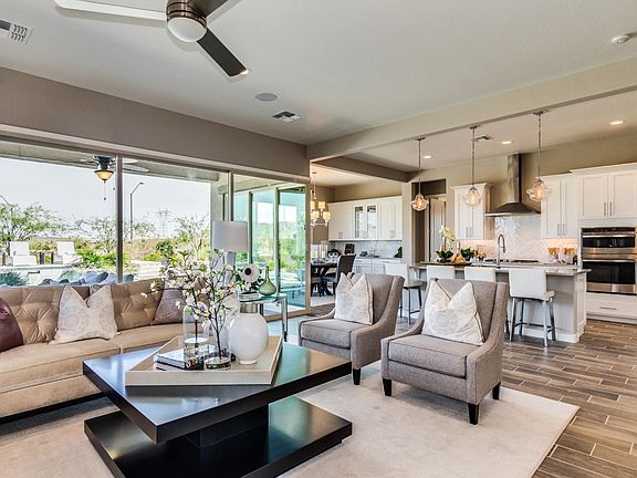 The model is for sale and at a HUGE DISCOUNT - OVER $ 132,000 off. You don't want to miss this amazing model with mountain views. You need to see all the upgrades this home has to offer. Highlights of this ranch-style model home include airy 10' ceilings, an expansive great room that overlooks a covered patio, and a gourmet kitchen featuring 42'' cabinets, granite countertops, an island and a nook with additional cabinets and a corner-meet door. A lavish master suite boasts a tray ceiling, deluxe bath with rain shower and adjacent club room with wet bar, and two additional bedrooms provide ample space for relaxation. You'll also appreciate a study with a built-in bookcase, a laundry with cabinets and a service sink, two-tone interior paint, a 3-car garage, custom landscaping , pool and mor