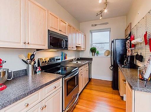 Bright and sunny front facing corner unit with high ceilings and tree top views. This two bedroom features hardwood floors throughout, updated kitchen and plenty of closet space. Laundry in basement. Close to C/D lines and the restaurants of Washington Square. Low association fee. This move in ready unit is not to be missed! Great unit for an investor or owner occupant.