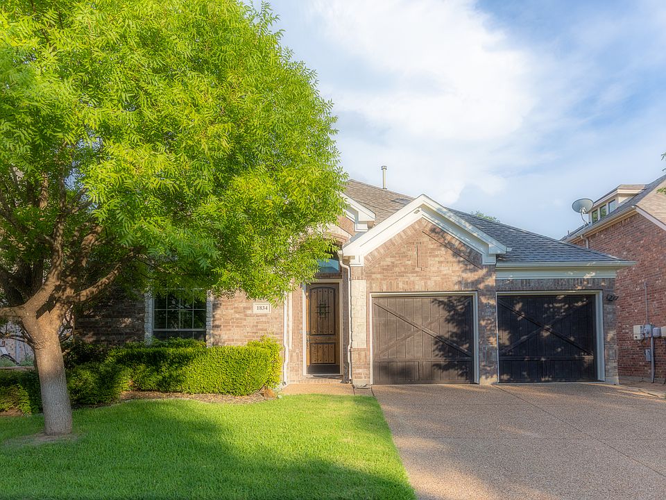 Discover comfort and style in this beautifully maintained 3 bedroom, 2 bathroom home located just minutes from George Bush Turnpike, shopping, and dining. Hardwood floors throughout, complemented by plantation shutters, vaulted ceilings, and crown molding. The open layout features a spacious living area with a fireplace, formal dining, and a gourmet kitchen with stainless steel look appliances, and a central island. The primary suite offers a large walk-in closet and spa-like bath with soaking tub, separate shower, and dual vanities. Enjoy outdoor living on the extended patio with no rear neighbors, a new fence, and storage shed. Secondary bedrooms are perfect for guests, office space, or hobbies. This home blends privacy, charm, and convenience in one desirable location.