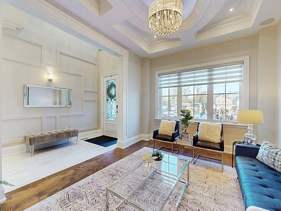 Exceptional custom-built luxury home in Pickering's prestigious Dunbarton Community! This rare 5+3 bedroom, 8 Bathroom residence offers 6,000 + sq ft above grade plus a 3,660 sq ft walk-up basement on a 49 x 152 ft lot. Built with a limestone exterior, it features LED lighting, built-in speakers, smart-home rough-ins, and hardwood on the main & second floors. The main level boasts 12 ft ceilings, open-concept living/dining, a spacious family room overlooking the backyard, a private office, and an oversized chef's kitchen with a massive island. The upper level features a stunning primary suite with a two-sided fireplace and a custom walk-in closet, plus ensuites in every bedroom. The fully finished walk-up basement offers potential for two in-law suites, each with it's own entrance, plus a secondary kitchen and secondary laundry.