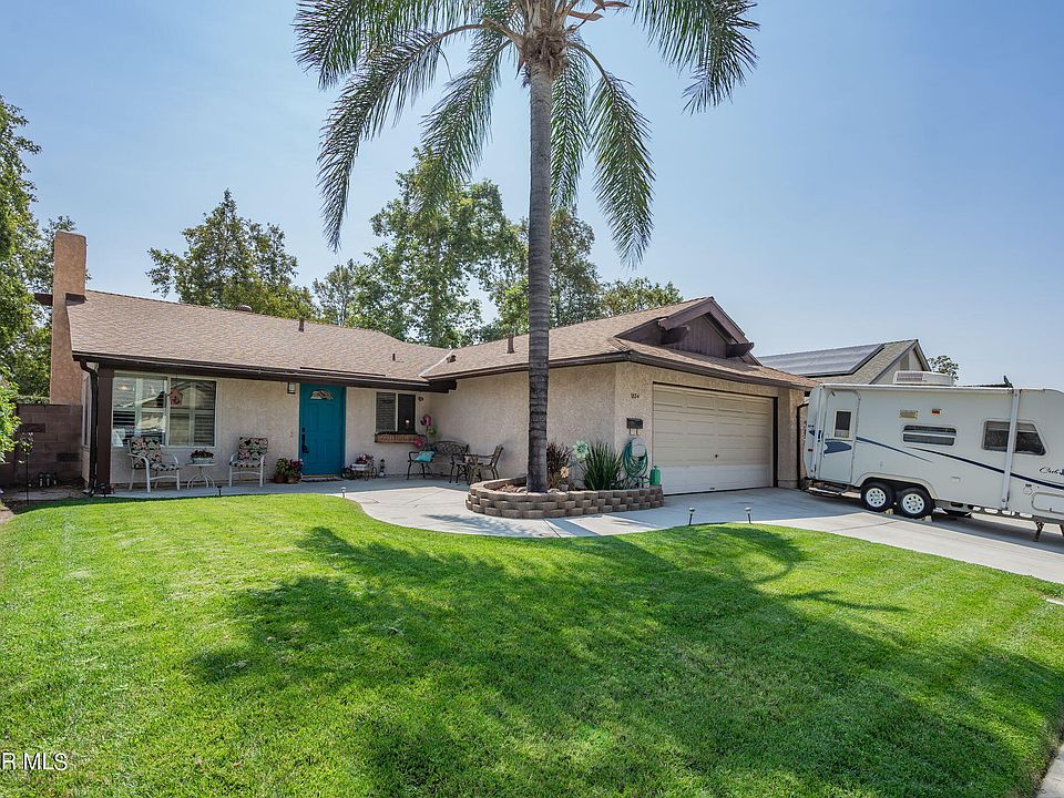 Great SINGLE STORY 3+2 is ready for YOU!! Spacious floor plan with enclosed patio add-on gives you even more room for family fun!! Light & bright open concept living areas plus above-ground spa to relax in during our balmy autumn nights!! Neutral decor throughout, raised panel doors, sliding glass door from primary bedroom to rear yard, plantation shutters & wood blinds, breakfast counter & family dining area make gatherings with family & friends a breeze!! Fireplace in living room is ready for your holiday entertaining & the low-maintenance rear yard is an additional space to enjoy the outdoors. This spacious single-story home is located within walking distance to Erringer & Los Angeles Ave & all of the shopping & dining venues in the area. Don't miss this home that is move-in ready for YOU!!