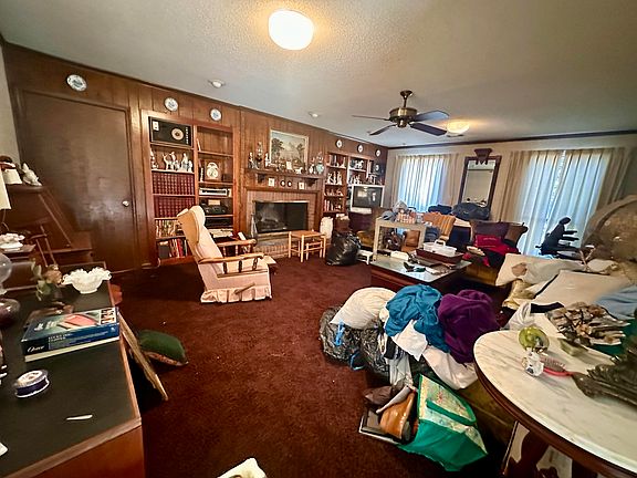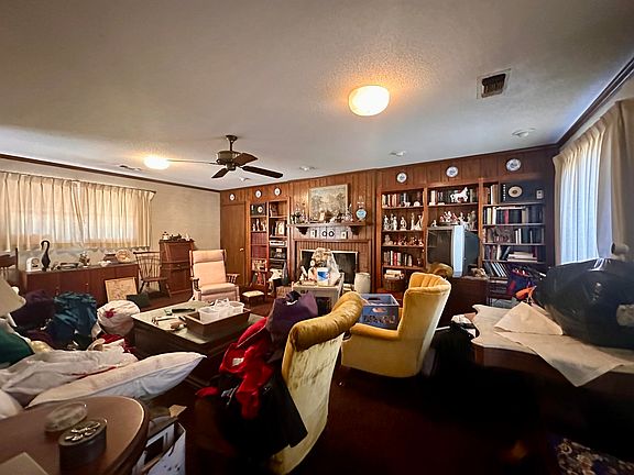 Large home on almost an acre of land. Enter the home into an vaulted atrium. The great room has wood paneling, built-in shelves and fireplace. Upstairs is a loft area, bedroom and bathroom. Inside the main part of the home is another large living space with built-in cabinetry for storage. A dining room is just off the kitchen. A large bedroom with 9'x10' closet. Another bedroom has 1/2 bathroom ensuite with dressing table. There are three more rooms that were used for a home sewing business. Let your imagination run wild with opportunity for this unique property. Home is in 'as is' condition and seller has never lived in the property.
