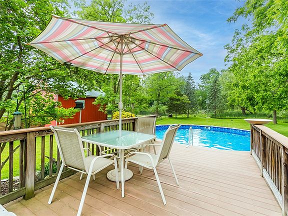 This spacious 4-bedroom, 2-full-bath home offers the backyard of your dreams in the Honeoye Falls-Lima school district! Over half an acre of land, yet you can walk to all the amenities in the charming village of Lima - the best of both worlds! Walk 4 minutes to the library, or 7 minutes to the popular Milk and Honey Cafe. There are no houses directly behind you, so you can enjoy the views of the woods while you relax in your pool. The deck is ready for you to host barbecues! Inside, the family room has a cozy fireplace (converted to gas in 2018) and a wall of windows. The kitchen has an airy feel with its vaulted ceiling and overlook into the family room, and the counters and backsplash were updated in 2011. Dishwasher is only 5 years old. For more formal entertaining, there is both a living room and dining room with beautiful molding and hardwood floors. There are two bedrooms and a full bathroom on the first floor, including a bedroom with soaring ceilings and a skylight (potential to be a fantastic office or craft room). New hot water tank (2023)! Delayed negotiations: Tuesday, June 20, 2023 at 2 pm. Welcome home!