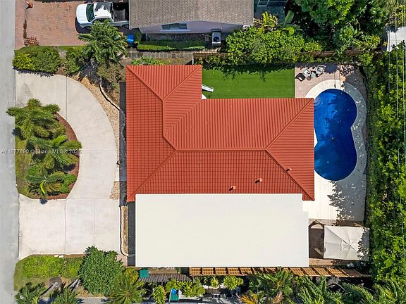 All about LOCATION! This large 3-bedroom, 3-bathroom home features spacious split bedrooms and a large dream kitchen with butler's pantry. Redwood flooring throughout and an open-concept design create spectacular living space. The large backyard is your private resort featuring a fully tiled, heated saltwater pool and large grassy area with cabana. Recent major updates include new metal roof (2021), new A/C (2020), and $30,000 whole-house gas-piped GENERAC generator. Additional premium features include impact hurricane-rated windows and doors, tankless water heater, 2-zone AC, and fully insulated attic. This move-in ready home combines luxury amenities with energy efficiency and storm protection. PRICED TO SELL! Motivated seller has already relocated north. Furniture photoshopped!