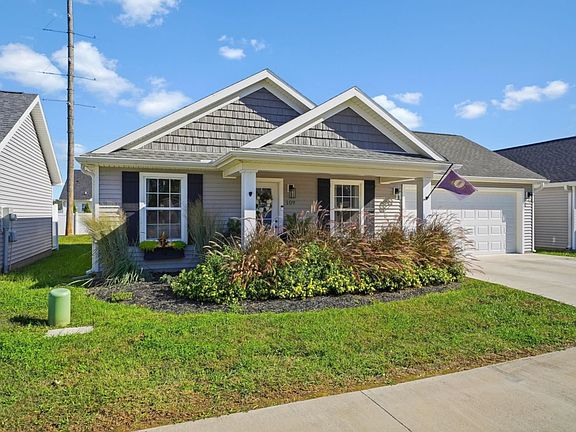 Check out this all one-level condo built by Joe Mattingly Builders for the ultimate low maintenance, move-in ready experience! It features 3 bedrooms and 2 full baths. Upon entering, you will notice luxury plank flooring throughout with new carpet in the bedrooms, white woodwork, and a beautiful neutral paint color scheme. It features open-concept living with a spacious living room that opens up into the eat-in kitchen area. Stainless steel appliances, white cabinets and countertops. Both bathrooms are bright and airy with today's trends in mind with the fixtures and vanities. The primary suite features a pocket door to maximize space and a shower with a seat. Outside, you have a nice back patio that's perfect for grilling out and a front porch as well. The black exterior lights kick on with photocell sensors, so everything stays nicely lit outside when it's dark. The gray vinyl siding with vinyl shake accents, white columns, and farmhouse black shutters make for great curb appeal. Private driveway and 2-car attached garage with the attic featuring a pull-down stairway with attic storage.