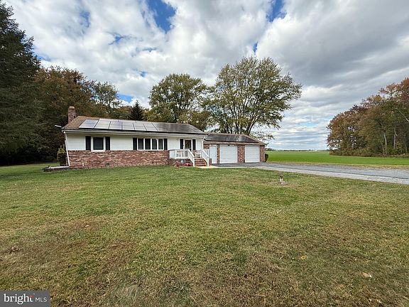 This adorable rancher has so many impressive features! Enjoy over 1,100 sq ft of living space (not including the sunroom), an oversized attached two-car garage, and a long driveway with ample parking. Plus, there’s an additional detached garage large enough for your boat, RV, or tandem parking—offering endless possibilities for storage or hobbies. The home offers an inviting layout, spacious rooms, and plenty of natural light! Kitchen has white cabinetry, space for an island or table, and charming wainscoting detail! Open Large living room and dining combo or use the the space as one huge living room! Remodeled main level bath with modern vanity and pretty tile work. Finished lower level has plush carpet, a renovated full bath, and plenty of room for entertaining, movie nights, or everyday recreation. Enjoy additional flexibility in the inviting sunroom—an ideal spot for gatherings, hobbies, or a party space that opens to the outdoors. A covered brick-floor porch extends your living area and creates the perfect setting for morning coffee, crab feasts, dining, or a lounge area. Additional features include hardwood floors, some fresh paint, front porch, arched doorways, vaulted ceilings, ceiling fans, wall-mount AC in sunroom; projector screen in sunroom; mini split in basement; pellet stove in basement and garage; wired for generator. The property’s exterior is just as impressive— The lot is simply beautiful—backing to woods and adjacent to open farmland for stunning views and privacy. All this tucked along a country road, yet only minutes from Aberdeen shops, restaurants, APG, and I-95 for easy commuting. Solar panels are leased and help keep utility costs low. Some furniture can convey/is negotiable. Don’t miss this exceptional opportunity to own your slice of Harford County charm!