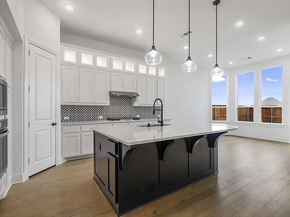 MLS# 20431806 - Built by Highland Homes - Ready Now! ~ With 11-12 foot ceilings, 8 foot doorways, & expanded guest bedrooms, this single story offers true livability! Featuring Cloudcroft light brick exterior & stunning interior design. Light wood floors, black & white kitchen cabinets with glass accents, quartz countertops, & black lighting fixtures & hardware throughout. Gas features include a Cloudcroft brick fireplace, 36 inch cooktop, & tankless water heater. The primary bathroom showcases a beautiful freestanding tub, double sinks with vanity space, & shower with tiled accent floor. The dining room features a beautiful bay window & the primary bedroom offers a cozy box seat window for unique detail!