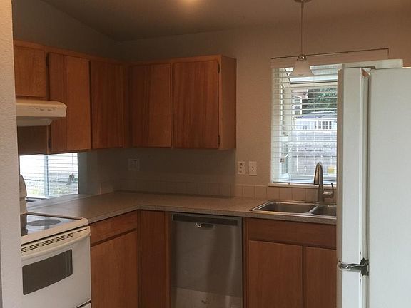 Lovely well maintained 2 bedroom, 1 bath rambler in Federal Way on culdesac. Large living and dining room with cathedral ceilings and wood stove. Kitchen with garden window, eating area, sliding doors to patio and large private fenced backyard. Newer paint and floor. Washer/dryer included. Ceiling fans and skylights. 2 car garage with openers. Convenient to 1-5, Federal Way and Tacoma. No smoking, 1 year lease, pets negotiable with NRPF. ALLEN Realtors