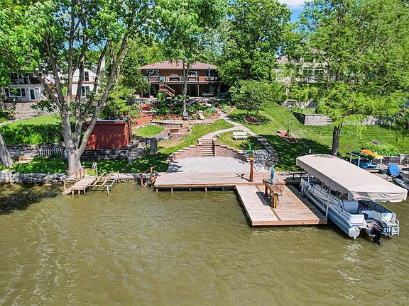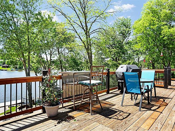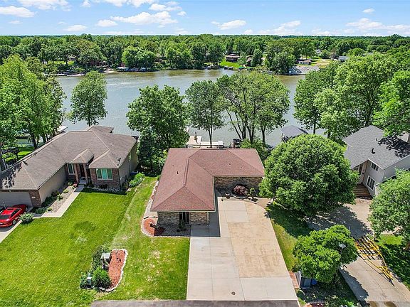 BEAUTIFULLY UPDATED, LAKEFRONT walkout brick ranch on the main channel of Holiday Shores! Vacation at home at this amazing property! Recent updates include a stunning kitchen w/custom soft close cabinets, tile backsplash, LG appliances, quartz countertops, etc. Also on main floor is living room w/gorgeous stone floor to ceiling WB fireplace, updated master suite w/gorgeous lake views & updated ensuite bath, 2 additional bedrooms & updated guest bath. Fabulously finished walkout lower level features epoxy flooring, custom wood ceiling w/abundant can lighting, 2nd WB fireplace w/floor to ceiling brick, 3rd bed, 3rd bath, bar area & rec room space, abundant storage & laundry. Outdoor features are amazing w/oasis-like backyard w/surrounding landscape, hardscape, expansive deck, patio, expansive dock w/extra entertaining space, remote control boat lift & canvas cover & jet ski lift. Please ask your favorite realtor for extensive list of upgrades!