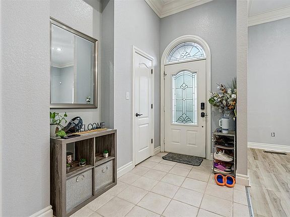Recent upgrades include a 50-year impact-resistant roof, two high-efficiency 26 SEER HVAC units, added attic insulation, new privacy fencing, and replaced driveway and sidewalks. No carpet on the first floor! Outdoor features include two covered patios (one off the primary suite), lush landscaping, sprinkler system, security system, water softener setup in garage, and a raised garden bed.