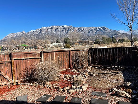 Welcome to this lovely patio home on a .20 acre lot in highly desirable Sandia Heights with breathtaking view of the mountains. This well designed home features an open floorplan and lovely features including tongue and groove ceilings, charming wood-burning fireplace and updated refrigerated air-conditioning. The location is fantastic and offers easy access to hiking and biking trails. There is a voluntary HOA and security through Sandia Heights Services for a buyer wanting this feature. Don't miss this opportunity to live in Sandia Heights at a hard to find price point! The kitchen & baths are original and property is priced accordingly.