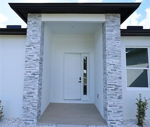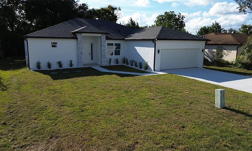 Beautiful New construction home with quartz countertop, luxury bathrooms, inside laundry and Bright open floor plan with plenty of natural light and tile throughout. pendant lighting in the dining area, adding a touch of elegance to the space. The kitchen has a lovely center island that overlooks an open family room, which is perfect for entertaining. 2 Master bedrooms, 2 regular rooms and a separate office/flex space that can also be a 5th bedroom! Outside, you’ll find a welcoming front entry, and an attached 2 car garage. Back porch is awesome to BBQ and entertain for your family and friends. This home offers the perfect combination of affordability, modern finishes, and convenience. Don't miss out on this stylish home being conveniently located close to shopping, restaurants, schools, hospitals and beaches. NO HOA! No CDD, Don’t miss the opportunity to own this new construction home.