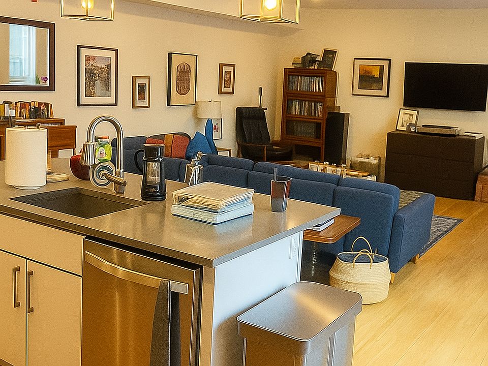 Sleek finishesModern unitIn-unit washer and dryerOpen layoutStainless steel appliances
