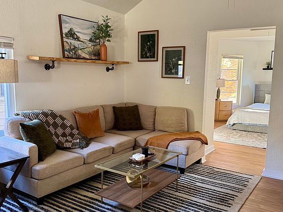 It's furnished with the basics you actually need (bed, sofa, dining spot) and the kitchen is stocked with essentials (pots, pans, dishes, coffee pot, etc). There's in-unit laundry, off-street parking, and a small private porch that's great for a quiet moment. Wi-Fi is included. The backyard is a work in progress right now; I'm putting in a simple patio and grill area for summer.