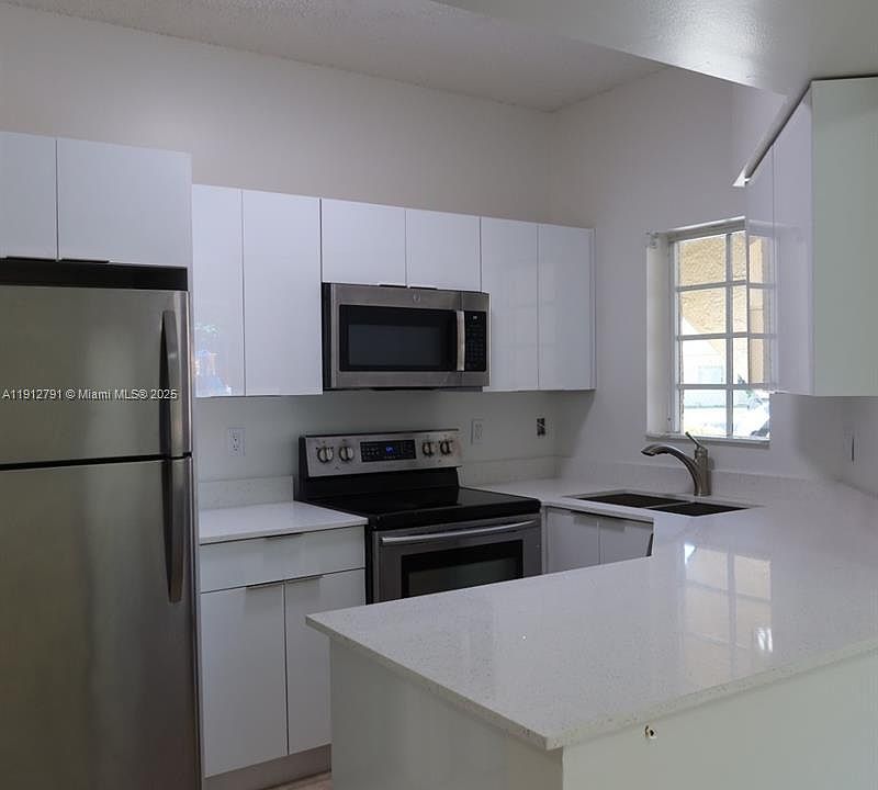 Investors! See this beautifully updated condo! This bright, open floor plan features a new kitchen with stainless steel appliances and vaulted ceilings, creating an airy, spacious feel. Enjoy the convenience of an in-unit washer and dryer, laundry room, and extra storage closet. It is the perfect area for a home office, gym, or yoga space. Freshly painted and ready for its new owner. Parking right in front of the unit. Community amenities include a pool, clubhouse, spa, basketball and tennis courts, and playground. No rental restrictions. Easy access to I-75 and the Palmetto Expressway. Roof and exterior maintenance are included in the association fee.