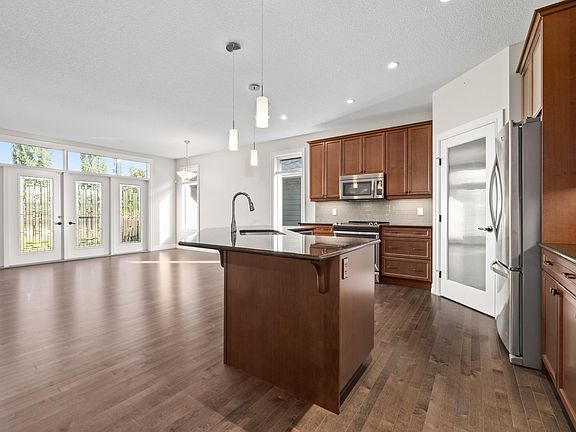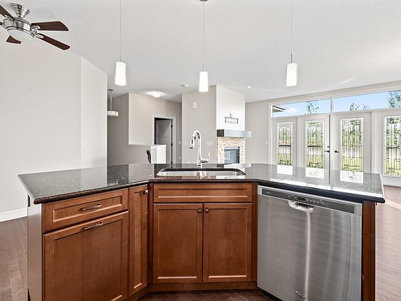 Oversized doorsOpen concept kitchenQuartz countersGas fireplaceHardwood floorsMain floor laundry roomLarge deck