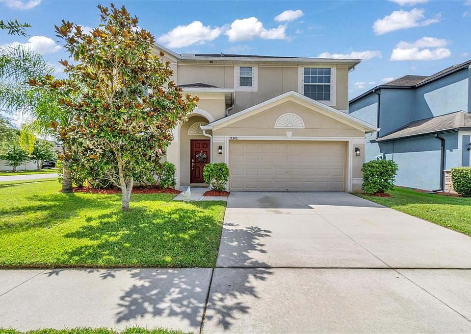 Welcome to your next home in the highly sought-after community of Concord Station! This beautiful two-story home features 4 spacious bedrooms, 2.5 bathrooms, and a 2-car garage, offering both comfort and style. Located on a large corner lot, this home provides an ideal setting for Florida living. The first floor features luxury vinyl flooring throughout, creating a sleek and modern look that's easy to maintain. The home is filled with natural light and features a kitchen with 42” cabinets, granite countertops, and island, a walk-in pantry, and stainless-steel appliances. Upstairs, you'll find four generously sized bedrooms, including the primary suite, which is a true retreat. The primary suite offers a spacious walk-in closet and an ensuite bathroom equipped with a double vanity and dual sinks, relaxing garden tub, a separate shower, and a private water closet. One of the bedrooms is versatile that can be easily used as a flex room, media room, or game room, offering flexibility to suit your needs. The laundry room also located on the second floor. The spacious backyard is perfect for outdoor living and entertaining, with a covered, paved patio and extended pavers, creating an inviting space to relax and enjoy the outdoors. Concord Station also offers an array of top-notch amenities for residents, including a well-equipped clubhouse with a fitness center, resort-style pool with splash pad, fenced in playground, tennis and basketball courts, picnic areas, and more. Not only does this home have everything you need, but its location is unbeatable. You're just minutes away from shopping, dining, top-rated schools, and all major highways, making your commute to Tampa and the surrounding areas effortless. This home truly combines the best of comfort, style, and location—don't miss the chance to make it yours!