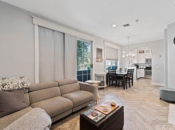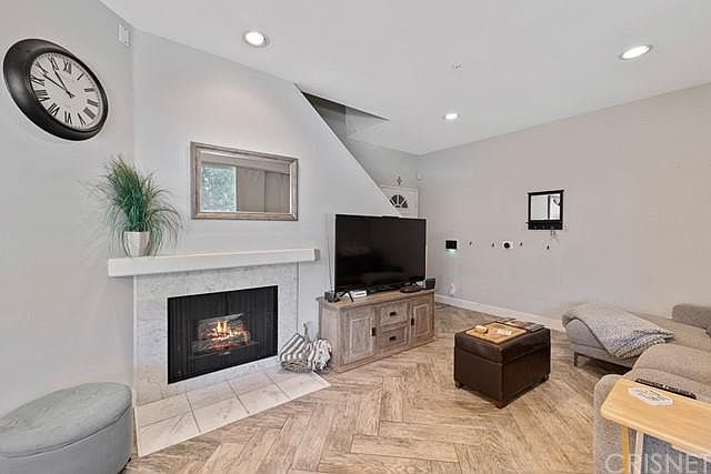 Welcome to this beautifully remodeled 2 bedroom, 2 bathroom end-unit in the heart of Reseda. As you walk in, notice the wood grain porcelain tile laid in a chevron pattern, the high ceilings and a lovely fireplace. The kitchen is white and bright with quartz countertops, Carrera marble backsplash, stainless steel appliances, lit glass display cabinetry, newer lighting and hardware. The den can be used as a second living space, office space, playroom or even made into a 3rd bedroom (by installing a barn door) with an upgraded ensuite with stone wall, newer vanity and granite floor. Enjoy sitting outside soaking up the sun on the downstairs balcony. Upstairs youll find two large bedrooms with vaulted ceilings, gorgeously remodeled ensuites and glass sliders to the second-floor balcony. The primary bedroom has a wall of built in closets and drawers and the bath shows off its updated vanity, spacious Carrera marble walk-in shower and contemporary lighting. This unit has an attached, secure 2-car garage with full sized laundry. The unit sits at the back of the complex in a quiet end location. The complex has an active HOA that cares about the property the entire complex was recently painted including all of the unit and entrance doors. The complex also hosts a beautiful pool and hot tub and the HOA pays for water, trash, maintenance and basic insurance. Enjoy living close to everything CSUN, Northridge Fashion Mall, The Village, Topanga Mall, markets, restaurants and the 101, 405 and 118 Freeways.