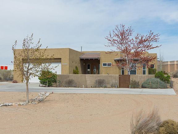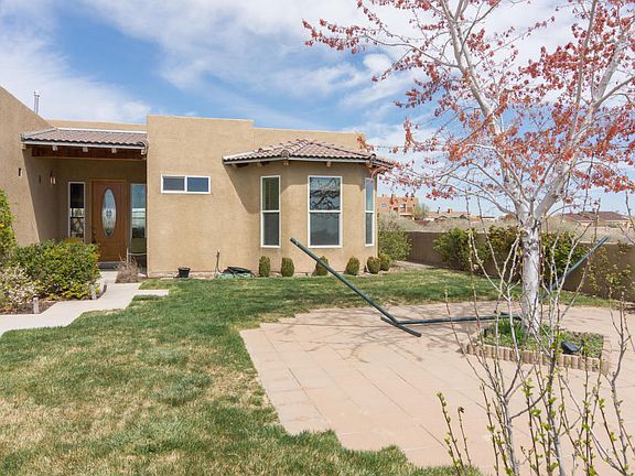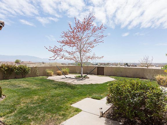 Charming custom home on half acre lot with sweeping, stunning Sandia Mountain & sunset views! Spacious & open floor plan with stylish features & quality amenities! A lovely courtyard entrance with great views! Deluxe kitchen has quality stainless steel appliances, granite counter tops, decorative backsplash, breakfast bar, pantry & atrium door to covered patio. Cozy great room with raised ceiling & wall of windows with backyard views. Separated master has atrium door to covered patio; plus a walk-in closet & luxurious bathroom with garden tub, separate tiled shower. Two spacious bedrooms plus an additional space for a study. Custom cabinetry! Solid wood interior doors! Gorgeous landscaped backyard with grass, gazebo & views! RV parking! 600 sq. ft. 2 car garage! Nearby shopping & schools!