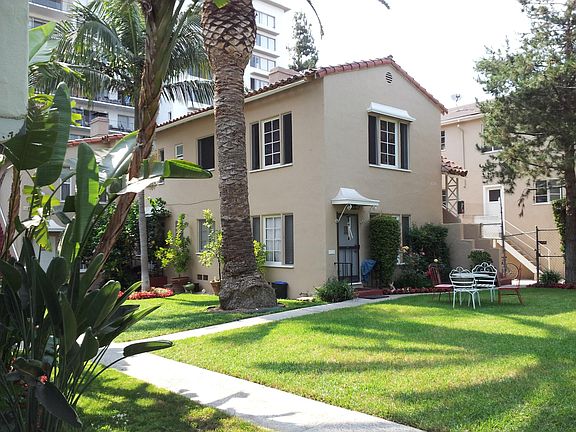This Upper Apartments's Spanish Architecture and Property Grounds are something special! If you're looking for atmosphere, space, lush landscape, sunlight and privacy, this Bright 700 Sq.Ft. apartment is waiting for you in the heart of Hollywood, within walking distance of all the night life, theaters, music and movie joints, yet once you step foot on the grounds all of that is left behind. Your Air Conditioned Apartment shares NO COMMON WALLS with anyone. Your own place above it all. The Apartment is situated amongst an Oasis of Trees, Plants, & Manicured Lawns that provide you with a peaceful hide-a-way in the Whitley Heights area of Hollywood. The apartment's interior has beautiful Hardwood Floors, plenty of Closet Space, Bright and Airy Dining Room off the good sized Kitchen, Fresh paint, Cabinets and counter space, Stainless Steel kitchen sink, refrigerator, and Gas Range & Oven, Air Conditioning, Ceiling Fans, Tiled Bathroom with Shower and Tub with Glass Doors. This is a vintage Apartment so you get those special touches not found in the ultra-modern, tiny apartments that are built today. You also have ONE ON-SITE PARKING SPACE and remote control entry/exit; TWO stackable Washer/Dryers provide a great ON-SITE laundry facility. This Apartment is offered at $1975 per month with a Refundable Security Deposit of $1995. Shown by Appointment Only. Please CALL our Property Manager, Joseph Moreno, from 9 A.M. to 6 P.M. or EMAIL him to set an appointment to view the Apartment. Tenant Pays for Electricity and Gas