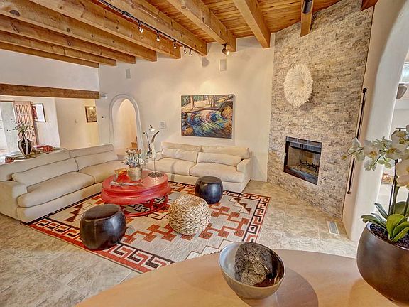 This beautiful contemporary home is extremely well designed & in fantastic condition. Fabulous house for entertaining, with a gourmet kitchen, Oak & tile floors, & granite counter tops. The main level consists of a spacious living room with gas fire place & grand dinning room that wraps around the kitchen. The downstairs master has a gas fireplace and courtyard access. The 2nd floor master suite features a living area with a wet bar & a 2 way gas fire place, as well as an outdoor portal with a wood burning fire place. The master suite also includes an exercise area, walk-in closet with a closet carousel. The upstairs laundry room includes built-in cabinets & rinse sink. This home provides an enticing combination of formal living spaces and more casual venues for grand entertaining & relaxed living. A full-size, automated, indoor swimming pool & hot tub separates the main house from the guest house. The 3,000 sq ft room is equipped with a dehumidifier and climate-controlled, & has its own separate bathroom with shower. The walled courtyard provides great outdoor dining & entertaining spaces. The guest wing includes a separate kitchenette & a 2 car garage. This exceptional luxury property is sited on a private 1+ acre lot that is only minutes from downtown. With city water & registered private well!