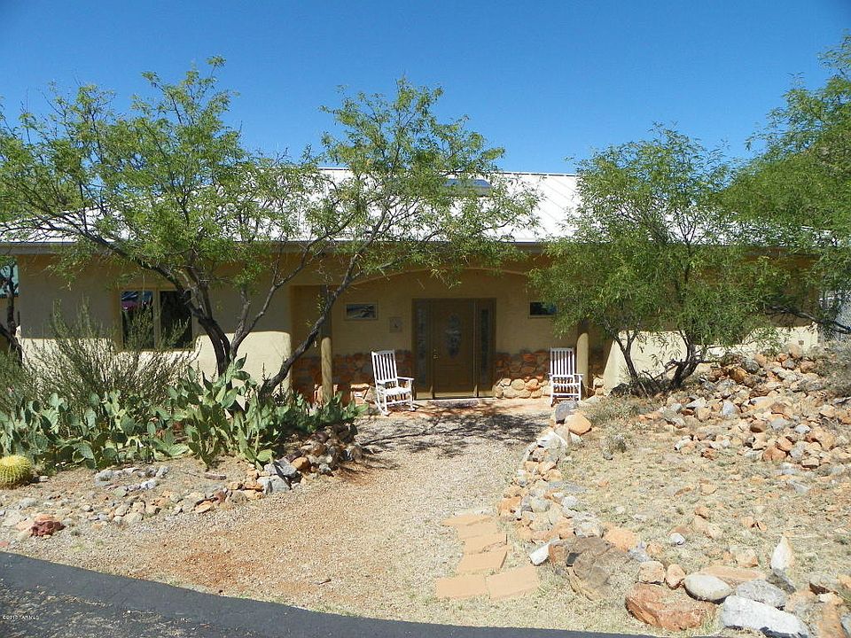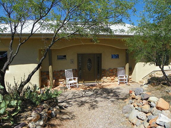 Opportunity to buy a highly efficient straw bale construction home with radiant heat in the floor and central A/C. Exterior walls are 22 inches thick. Solar assisted hot water. This unique custom home is on 4.85 acres with awesome views of the mountains and Santa Cruz Valley. Casita has a bedroom, bathroom, kitchenette and living room. It is all steel construction with a metal roof. Too many features to list here.