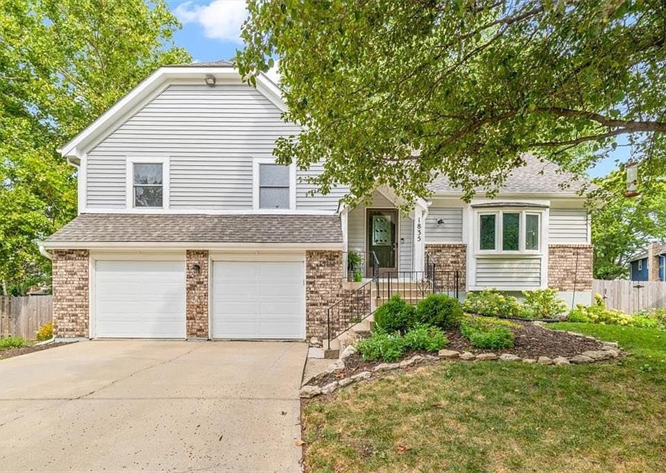Updates, upgrades and a backyard paradise with your name on it, all located in an extremely convenient part of Olathe! Enjoy a private cul-de-sac right across from Scarborough elementary, right next to the Indian Creek Trail, and within walking distance of no less than 6 parks for the kids to play at! When you drive up, you'll notice 6 year old high-end insulated garage doors, the brand new class 4 impact resistant roof that'll save you a lot of money! You'll see a beautifully landscaped exterior, a big flat driveway, low maintenance vinyl siding, newer large gutters, new casement bay windows, etc. Walking in, you'll see vaulted ceilings and the beautiful chimney with a fireplace in both the upper living room and lower family room. Notice how much natural light shines through the house! You'll find high quality bamboo flooring and tasteful carpet, both 7 years old. In the kitchen you'll see 7 year old stainless steel appliances that stay with the property, and granite countertops spanning the vast kitchen with ample counter/cabinet space. Enjoy the large dining area, breakfast nook, and large kitchen island that invites your guests to gather and fellowship. As you walk down the hall towards the bedrooms, you'll find a full bathroom, a convenient laundry nook, and 3 large bedrooms. The Master bedroom offers a generously-sized closet and a bathroom with a nice shower which was just redone in 24'. When heading to the lower level, you'll find a large 4th bedroom with a full bath, all attached to the huge lower level family room that walks out to the back yard (french doors). Check out the oversized 2 car garage equipped with EV charger! Back deck, sump pump, radon system, water heater, and high efficiency furnace and AC all less than 7 years old! Don't miss the large shed out back, painted in 2024. Kids play set and trampoline are negotiable accessories that can stay or go. All info to be verified by buyer/buyer's agent. Owner is a licensed real estate agent in KS & MO.