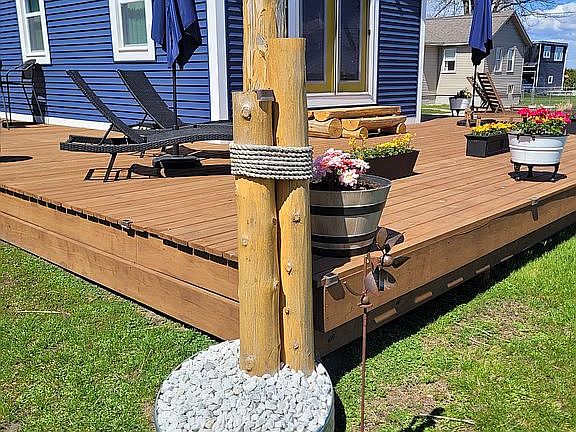 Vacation year around in this great home with phenomenal views of Muskegon Lake located in the Bluffton neighborhood. Launch your kayak right across the street from your new home for a quick exercise in the morning. Enjoy the views, sight and sounds of Muskegon Lake from the large wrap around deck. Home has been remodeled with hard wood floors, ceramic floors, carpeting and new paint. Large living room with wood blower fireplace and a huge picture window, and French doors leading to a 900 square foot deck that make it a great place to gather. Large detached garage with storage with alley access to garage. Call today to schedule a showing and experience the beautiful views! Buyer to verify all information. 231-724-0753
