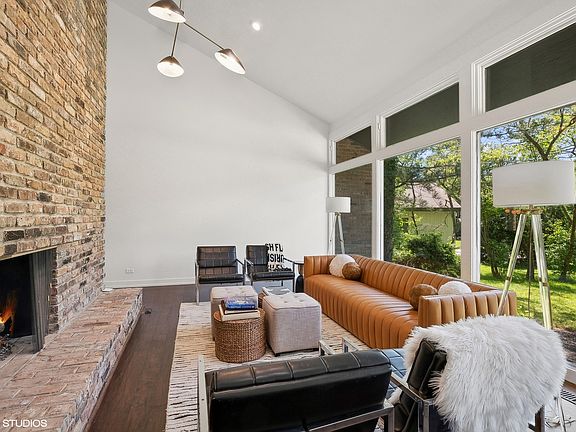 Absolute perfection!! Welcome to this impeccably renovated mid-century modern home with stunning details throughout, just featured in Crain's Chicago Business. Every item has been thoughtfully curated and incorporated into the cohesive design from top to bottom. This home is open, light and airy with skylights throughout. The main level features brand new hardwood floors, a spectacular floor-to-ceiling slat wall feature, dramatic stairway with steel posts and reclaimed wood railing all surrounding the centerpiece - a massive 2-sided brick fireplace! The kitchen is a chef's dream, complete with brand new Thermador and Bosch appliances, lighted drawers and motion sensor faucet. So many special features and nothing was overlooked - Even the laundry room is gorgeous! Upstairs, the primary bedroom suite offers a walk-in closet, newly renovated spa-like bathroom and access to a private balcony - Perfect for enjoying your morning coffee, which can be prepared without even leaving with the built-in dry bar. Another fully renovated bathroom and two other bedrooms are on this level, one including a private screened in balcony overlooking the pretty back yard. The lower level is fully finished with a huge office, gym and rec/media room. Outside, you'll find a large screened in porch, spacious deck and beautiful private yard. Don't miss the opportunity to make this meticulously renovated mid-century modern gem your own. Private location on almost a 1/2 acre, cul-de-sac, fully fenced yard. Fabulous location near shopping, parks, golf, and interstate access. Highly rated Homewood-Flossmoor High School District.