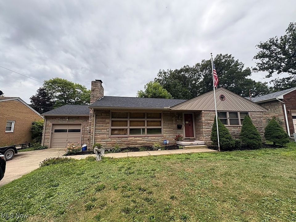 This charming ranch offers comfortable living in a desirable location, just steps from Mill Creek Park Golf Course. The home features a spacious living room with a cozy wood-burning fireplace, perfect for gathering with family and friends. The kitchen with dinette provides a bright, functional space for meals, while three bedrooms and a full bath complete the main level. The full basement adds incredible versatility, offering a rec room, laundry area, ample storage, and a second full bath with a tiled shower stall. In 2024, the basement was professionally waterproofed by Ohio State Waterproofing and includes a transferable warranty for peace of mind. Additional features include: 1-car attached garage, double cement driveway for extra parking, and large lot with plenty of outdoor space. New roof (2023), hot water tank (2023). Schedule your private showing today!