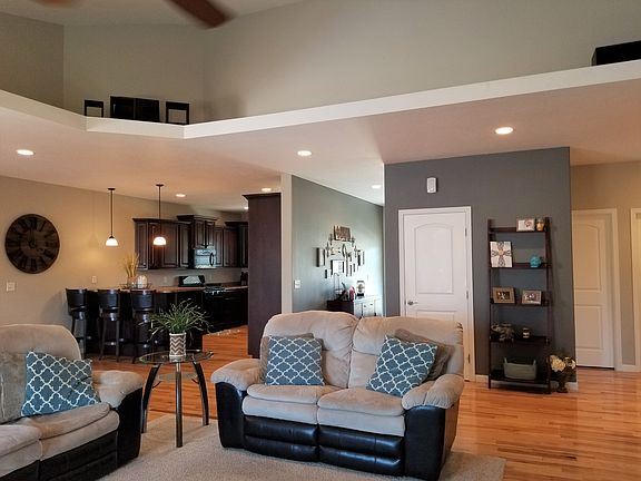 Great family home that is larger than it looks! 3 bedroom, 2 1/2 bath open concept ranch. Beautiful hickory hardwood flooring. Main floor laundry with pocket door. Split bedroom floor plan. 2 stall attached garage, plus and additional 2 stall detached garage with attic storage. Space for RV/trailer parking. Irrigation system. New roof on house and garages (April 2018). New water heater (2016). New carpet (2016). Gas FP in great room and wired for surround sound. Owned Water softener. 9 ft + ceilings on main floor. Full basement with 9 ft ceilings including three additional framed bedrooms and each with an egress window. The basement also has an additional full bath roughed in. Lots of room for entertaining with a large deck and patio in the back.