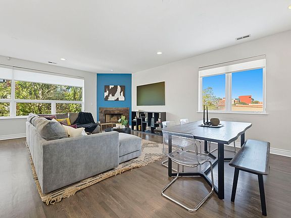 This beautifully updated, light-filled home in an intimate elevator building truly has it all! The open-concept living, dining, and kitchen area is perfect for both everyday comfort and entertaining, highlighted by refinished hardwood floors, a gas-start wood-burning fireplace, and oversized windows that flood the space with natural light. The newly renovated kitchen is a showpiece with pristine Calacatta Andria quartz countertops, white soft-close cabinetry with abundant storage, and a shimmering Dominica herringbone glass mosaic backsplash. The spacious primary suite offers direct access to a private deck, a walk-in closet with a custom adjustable shelving system, and a spa-like bath with dual vanities, a walk-in shower, and a separate jacuzzi tub. Two additional bedrooms provide versatility, with fresh paint, trim, and doors for a crisp, move-in-ready feel. Outdoor living is effortless with a southeast-facing deck and built-in gas line for year-round grilling-perfect for morning coffee or entertaining. There's also potential to create your own private rooftop oasis above. Additional updates throughout include new electrical outlets and bidet attachments in the bathrooms, adding thoughtful convenience at every turn. Rounding out this exceptional home are a full-size washer and dryer, limited shared walls for privacy, and the option to have a rare luxury of two side-by-side garage parking spaces. Stylish, functional, and move-in ready, this residence is a rare find that checks every box. Walker and Biker's dream! Just steps from the 606 trail with direct access to Park 567, this location offers everything you can possibly imagine! Transportation is effortless with the Western Blue Line 1 block away, Damen Blue Line just 3 blocks, and the Milwaukee bus outside your door. Coffee shops (Ipsento next door), grocery stores, gyms, yoga studios, dining, shopping, nightlife and daycare are all within blocks. Perfectly situated between Wicker Park and Logan Square, you'll enjoy the best of both neighborhoods! Come see for yourself!