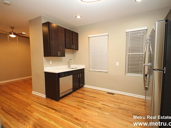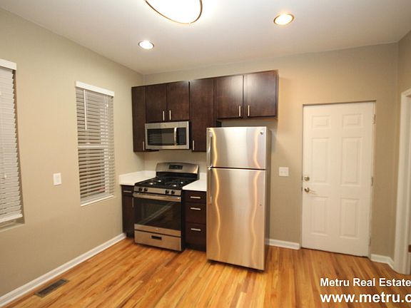 Available 9/26/25 or later. Renovated 1 bedroom plus den, 1 bathroom apartment on elevated 1st floor in walk-up building. Renovated w/updated kitchen & bathroom finishes. Hardwood floors throughout. White quartz countertops, stainless steel appliances, espresso cabinets. In-unit combo washer/dryer. Central heat; would need to provide own a/c units. Easy street parking. Steps from the 606 trail, the Clybourn Metra, and tons of Bucktown restaurants, etc. Online resident portal. Pet policy: cats and dogs are welcome, 2 pets max, no breed or weight restrictions; $250 one time pet fee per apartment, $30 per month pet rent per pet. Lease terms: application fee is $79 per person; one time admin fee is $350 per tenant. No security deposit. Tenants pay all utilities, including gas, electricity, and water/sewer/trash fees. Renter's insurance is required. Flexible lease terms available. Pricing can vary daily based on move-in date and lease term selections. Photos are of the available apartment.