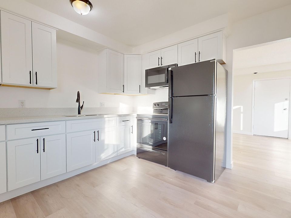 OPEN HOUSE, Only Friday from 12PM to 1:30PM. Fully Renovated 2 Bed, 2 Bath + Office - Modern Comfort & Style! Welcome to this beautifully renovated 800 sq. ft. 2-bedroom, 2 -bathroom home with a bonus office space! No detail has been overlooked in this stylish upgrade. Brand new hardwood floors flow seamlessly throughout the open and airy living spaces, offering both elegance and durability. The kitchen is a chef's dream with all-new, top-of-the-line appliances, including a microwave, range/oven, and refrigerator. The sleek design is complemented by recessed lighting, providing a bright and welcoming atmosphere. Both bedrooms feature ceiling fans for added comfort, while the bathrooms are elegantly designed with tiled shower/tub combos. The office space is perfect for remote work or as an additional living area. This home combines modern finishes with everyday convenience schedule a tour today and make it yours! Street Parking. 12 Month Lease With 1 Months Rent Deposit.