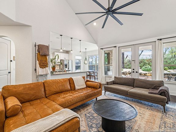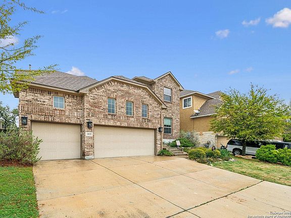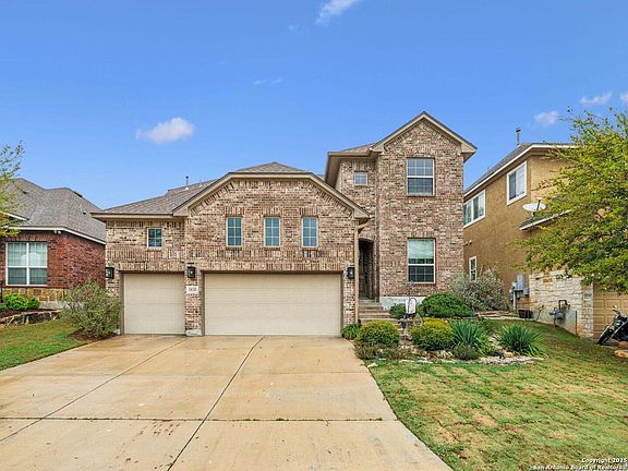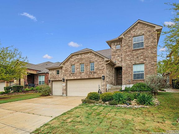 Discover this beautifully maintained 2-story Sitterle home, nestled in the highly desirable Kinder Ranch community, at the foothills of the Hill Country. This spacious floor plan is perfect for family living, featuring elegant granite countertops, custom paint, and stunning Bali cellular shades. Gorgeous hardwood floors flow throughout the main living areas on the first floor, adding warmth and character to the space. Located in the coveted Prospect Creek neighborhood of Kinder Ranch, this home is just blocks away from the acclaimed Kinder Ranch Elementary School, offering convenience and easy access for families. The versatile study downstairs can easily double as a 5th bedroom, ideal for a mother-in-law or guest suite. Enjoy a low-maintenance yard and the added benefit of a 3-car garage with ample storage space. Additional features include foam insulation, an in-wall pest control system, a new water heater, a reverse osmosis water filtration system, and a Vivint security system for peace of mind. The living room boasts a newly installed electric fireplace, while the kitchen has been updated with painted cabinets, upgraded light fixtures, and custom handles on all cabinetry. This exceptional home is located within the highly regarded Comal Independent School District, offering both comfort and convenience.