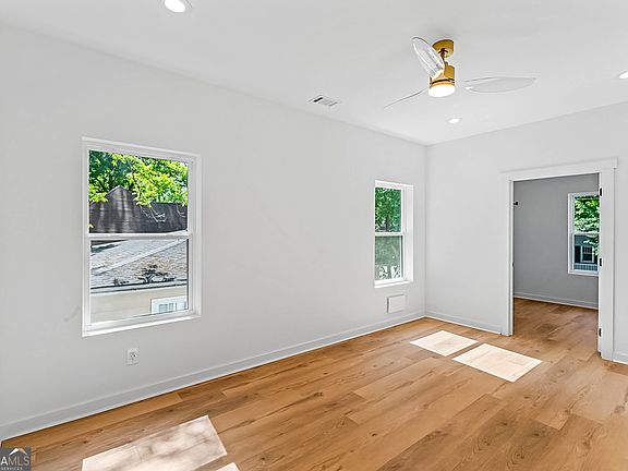 This meticulously designed four-bedroom, three-bath home offers just over 2,200 square feet of modern living. The open-concept floor plan is filled with natural light, highlighting sleek flooring and contemporary finishes. The main-level features an inviting living room with an electric fireplace and a versatile flex space with a full bath perfect for a home office or guest suite. The chef-inspired kitchen is a true showpiece, boasting a striking island, high-end SMART appliances, and seamless flow for entertaining or quiet meals at home. Upstairs, the primary suite provides a serene retreat with dual vanities, a freestanding soaking tub, and a luxurious seven-head shower system. With its refined design and attractive new pricing, this home presents an extraordinary opportunity.