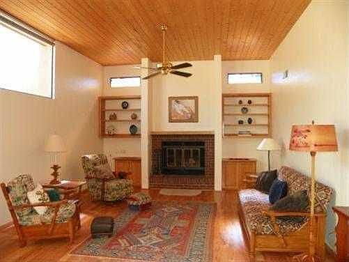 Absolutely Stuning Views of the Sandia Mtns in this Lovely 2 Bedroom home. This Gorgeous home features 12 cielings, clerstory windows, wood floors, brick flooring in foyer! The Great Room has tongue & grove beam cielings, wood burning fireplace, built-ins, beautiful stained glass. New Appliances in Kitchen with bar that opens to dining/living. Huge Mstr Bdrm w/jetted tub, Walk-in Closet,sitting area. Refrigerator/Washer/Dryer stay w/this adorable home! Walled bkyd w/mtn Views.This is Must See!