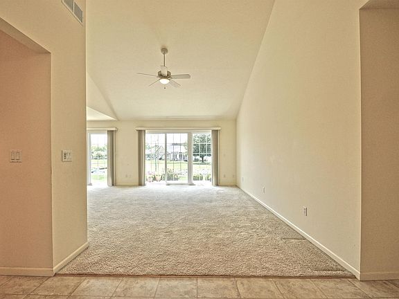 Highly sought after address - Tawny Lake. Beautiful lake front villa with total water views. Bright and cheerful sunlit living room dining room combo with a wall of windows/sliders and views of the lake. The kitchen has an opening to the living room above the sink, space for a small table in front of yet another large window. Lots of cabinetry, some with pull out shelves and a convenient layout for preparing meals for entertaining or just a small snack. Pantry plus main floor laundry and storage closet. Primary suite features huge walk-in closet and a large full bath, plus a slider with views of the lake. Second bedroom has a large closet and large window with eastern exposure. Third room has been used as an office but there is a closet and doors can easily be added.