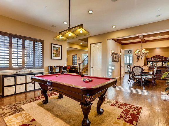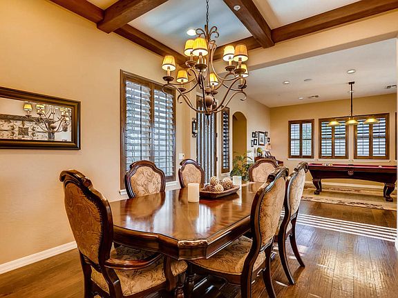 SELLER OFFERING $15K POOL CREDIT WITH A FULL PRICE OFFER!!This former Ashton Woods model home has so many gorgeous features! Solid wood flooring, granite counters, wood shutters, amazing tile details, dream office with built in desks and cabinets, cozy fireplace, and movie room. If you are looking for an amazing kitchen, look no further. This kitchen includes Bosch appliances, elegant cabinetry, tile back splash, large pantry, and a large eat in area. The home backs to a large wash and is on a cul-de-sac road. The backyard has newly installed artificial grass, slate tile flooring on the patios, built-in BBQ island, and a hot tub that will stay with the home.